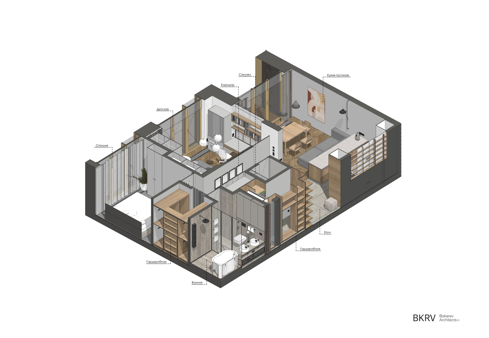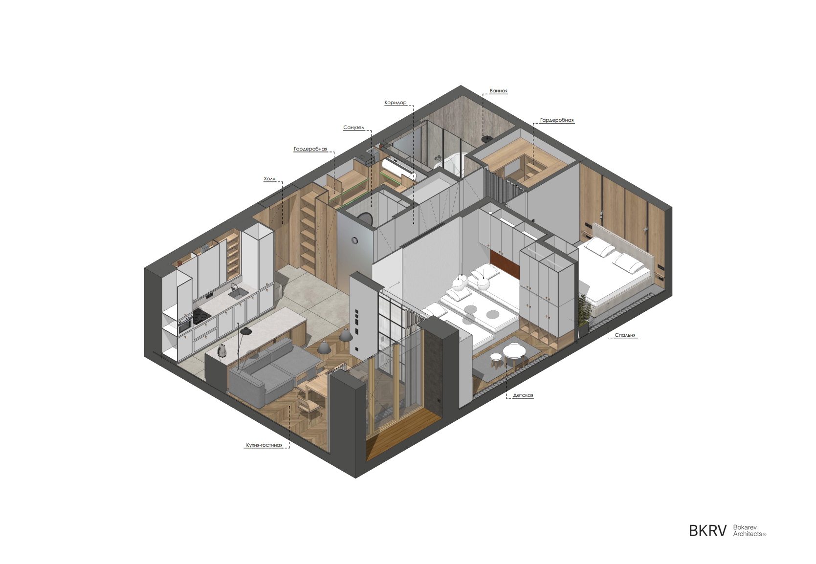 Проект интерьера компактной и функциональной квартиры для молодой семьи с тремя детьми.