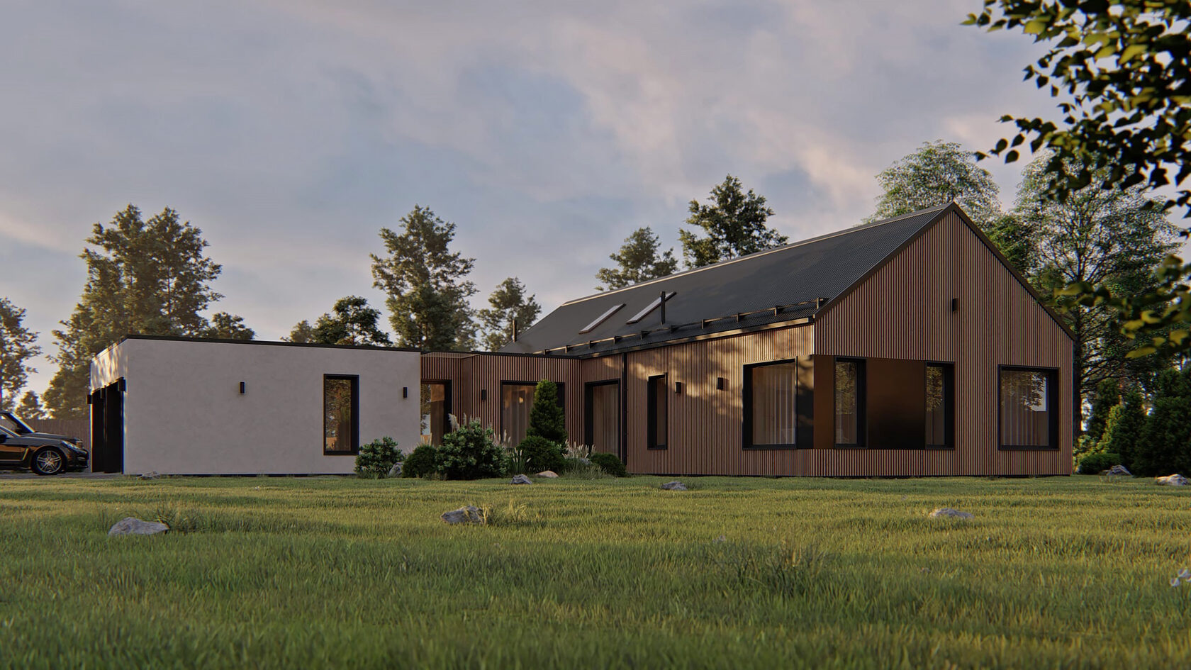 Проект загородного дома для молодой семьи в стиле барнхаус